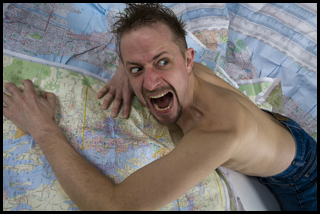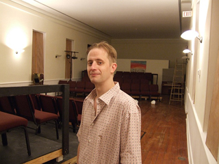 MID FACTUM 27MY08: The theater was built in the afternoon, with a slight alley, sort of v-shaped. I think some of the show is brilliant in this setting, but it's weird not having a vaudeville proscenium. We've stolen this pretty cool effect from Rodney Rogers who'se doing a show called The Tragedian, about Edwin Booth, one of the greatest American actors of all time, and incidentally the brother of John Wilkes. Anyway, the effect is using this three-mirror vanity for the gypsy song, Madame Flora. That way the audience views me through the mirror. Wild. On a lesser note, I feel incredibly ill. At 3:00 today, I spaced two of the physical scenes and literally collapsed on the front row, laying in the seats for an hour before recovering. We almost cancelled the show. Bronte, bless her, was a trouper. And Jennifer had the patience of a saint, calming me over the phone, whilst layovered in Atlanta on her way here. We decided to give it until 6:30 to make the call. In the end, I chose the show must go on option. My voice was bizarre--able to reach some mighty low lows, like in La Ci. But it was touch and go for a bit, I tell ya. Dizziness came over me in Vulcano, so I stopped singing for a bit before resuming. In the end I think I pulled it off. There were two reviewers in the house. One, Elizabeth Pandolfi who did the preview article in the City Paper, came up after and said she loved the show. Then Bronte and I drove to the airport to pick up Jennifer and Rowan at the airport. And then to Tbonz for chow and more hacking.