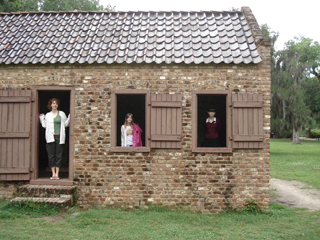 MID FACTUM 29MY08: Jennifer and I saw Taylor Mac perform. He's this audacious New York based performer whose show is a combination stand-up comedy, political ukulele, dramatic scenes, spoken word and audience interaction, all taking place while wearing dizzyingly gaudy woman's clothes and colorful sequins pasted over his face. The content speaks of his experiences being viewed by "normal" folk around the world in said outfits. It was touching at times, very fun, and a bit dated. The Charleston crowd, I think, was more stretched viewing the exposed/frank gay content than Jennifer and I, mostly because we have friends who are like this on a daily basis. Still, he had some great humor and poignant moments. (Can I make it sound any more dry? It actually wasn't.) During the day we visited Boone Plantation. I chose it because the slave quarters were well-excavated and there was a presentation in Gullah. Very interesting.