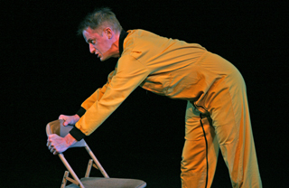 MID FACTUM 1MAR08: This is how I interpret appreciation of my work: after a show, if a person looks in my eyes, they probably liked it; if they avoid looking at me, they probably didn't like it. Weigh the statistics of responses. Find the median of appreciation. Seems an accurate system. Simple. Scientific. Over the years I've discovered a recurring theme in the appreciation of my solo work: audiences, a.k.a. "real" people, love it, industry people don't so much. I'm okay with this. (I mean, if everyone bowed at my feet in praise... well, frankly I'd most likely still be complaining about something.) Now, in a situation like last night, I can't rely on these statistics. Think about it: a backstage full of solo performers. Too many factors to rely on eye contact as litmus, my insecurity not in the least. Een so, post-show in the lobby found wondrous responses to the content of my short piece. It's more politically pertinent than had occurred to me. How does one resolve oneself to blind patriotism? Russia during the cold war vs. the U.S. today? Next week in class be prepared to discuss these issues. As for the whole SPF:2 Unicycle MonoLodge shorts night: it's a dynamic, entertaining evening. All the work is consistently well done and made stronger in gestalt of the well-constructed running order. Troy's delusional character piece is worth the price of admission. Brilliant.