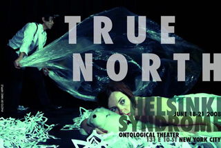 Set in the arctic landscape, TRUE NORTH is a non-linear performance that explores obsession and isolation, including: the sounds that things make when you break them, Cole Porter songs, the constellations, recycled stuffed animal skins, hundreds of paper snowflakes, blood, glitter, and polar bears. Day and Night, Night and Day, You are the One. Part of Ontological-Hysteric's Incubator series.