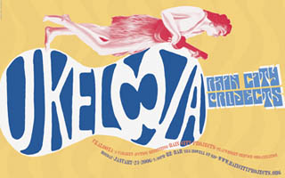 POST FACTUM 31JA08: Best lineup yet! Becky Poole's saw-bow rendition of Rainbow Connection was erie and yet somehow made that sweet song even sweeter. Linda Severt proved her ukulele prowess in an awesome instrumental display of finger-picking, and then yanked the rug from under us with a jolly original kid's tune. Cody Rivers altered reality with humor that actually cracked a fissure in the space-time continuum that is at this moment still hovering above the Re-bar stage. And Carmaig de Forest is my new hero. He uses his super punk ukulele powers for chaotic neutral. Welcome to Seattle, Carmaig. And what can be said of good friend Scot Augustson's work that hasn't already. See the film we saw, Lethal Cotillion, which won the national 48 Hour Film Festival shootout, and is about to play the Cannes Film Festival. The small yet robust crowd had obviously learned this is the event to get massive deals: the auction blew the roof off. If you didn't make it this year, as a fan, player and board member, I highly recommend you don't make the same mistake next time around. Oh yeah, Meghan and I shook em up with with a uke adaptation of a Joan Jett song, and my new solo creation Humpty Dumpty was well received. Thanks for asking