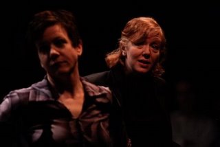The world's quickest theater festival -- 14 plays conceived, written, designed, scored, rehearsed and performed in 48 hours! This will be my second time playwrighting -- teaming up with my old writing buddy, Paul Shipp. Scroll down if you'd like to hear about my previous experience in July 07 and read the two plays that arose from my deliriously pressurized brain. Wonder how the cookie will crumble this time... POST FACTUM 7JA08:Paul and I have written together on several projects in the past, so we have the give-and-take thing down. Our process this weekend went expectedly swell. In general, some things were easier and some harder by collaborating: The grasp for an initial concept was more harried, but less freaked out, if that makes sense. (Fridays show concept was essentially my idea, while Saturday's was mostly Paul's.) The writing itself took longer with two people because of the back and forth, and the tight overnight time-frame is harried enough without this stress. On the good side, the checks-and-balances of being able to weigh ideas off another person is a great advantage. We had no re-writes either morning. As for the performances... Alan Bryce directed Friday night's piece titled Look of Love, based on the theme Ancient Knowledge. He chose to make it a full fledged musical, which was a bit harried in the first performance, but more sold in the second. We scored with a solid cast: Morgan Rowe as the love-torture victim, Erin Kraft as the love-torturer, and James Weidman as the love-patsy/redeemer. Second night's theme was Reason to Believe, so we went with nuns at a pancake breakfast of course: Only to Penny. I felt a tad guilty that we supplied our randomly picked director and old friend, Kibby MacKinnon, with a piece very similar to a play of ours we'd written a couple years back that she'd also directed, The Devil's Mile. She did a marvelous job. I got chills hearing the band sing the opening hymnal (composed earlier that afternoon), and a warm, syrupy feeling dripped over my heart seeing the piping-hot pancakes (complete with chocolate chip crosses) delivered to the audience. Kate Jaeger sold the innocent, blessed nun with bittersweet solemnity; Juniper Berolzheimer, who's becoming one of my favorite local actors, barreled out Mother Superior with comedic timing you-know-who would be proud of; and Audrey Bates and Cory Herndon were brash and divine. Oh, and over 200 pancakes were grilled at the cast party. Very special. (Yes, I know I used the word "harried" a bunch.)