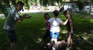 POST FACTUM 27JU09 7:06PM Some memorable lines from week two: "Beware my evil underpants" "I can't throw, but I can throw up" (spoken during a game of SPUD). This week went smoother, though the huge age range in the teen class -- 11 through 17 -- made for a challenge. Thanks to Zoe, Nathan and Annie for their amazing talent and assistance. Check out their improv group in Mount Vernon if you're in their hood.