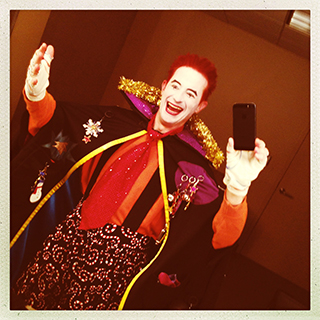 POST FACTUM 14DEC14 10PM Magic Circle shows are pretty phenomenal. The way they integrate the orchestra so elegantly and hysterically. Such a pleasure getting to be a part of the legacy of this company. I was proud of the new choreography in Brazilian Sleigh Bells, Doug and I worked on that quite a bit, which was very fun. During the performance a cellist got up danced with me on stage, and then I got the audience dancing in the aisles! Such a rush. After the conductor chased me off down the aisle for breaking the orchestra, I knew I had em cause they called out "don't leave!" Ain't that sweet. But the real joy for me was watching the wonderful elegance of Maggie's clown work. I bow down. We got a standing ovation. In the immensity of the orchestra hall, that's a lovely feeling.