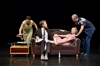 An actor steps on stage without ever having seen or read the script. Following the suggestions of a theater producer who is playing the role of a stage hypnotist, the actor is transformed into a grief-stricken father. Tim Crouch's show poses questions about the power of grief and the nature of imagination. The role of the father is played by a different guest actor every night. This production was originally presented by Theater Schmeater in2009. I directed, David Gassner stars.