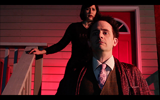 POST FACTUM 20MAY15 1PM Scotto's writing gets better every year. Even though the scope was smaller than his past few main stage shows, his writing is smoother and smart as hell. There wasn't a single misplaced or unnecessary moment; everything moved tightly, and hysterically, to fruition. But that's waxing. There are a couple concepts and conventions that are really unique to HPLC:SUC. First is the easy way it crosses the geek barrier. Hard core Lovecraftians of course have a field day with the accurate lore and complex in-jokes. What's truly amazing is there is nothing lost on the neophyte. Well, some depth lost, perhaps, but the humor and plot and world is as rich to the layperson. For real! The main element that achieves this connection is the character of Sonya. She is the everyperson, unaware and inconceiving of how anyone could dig this meaningless horror stuff -- the perfect vehicle for the uninitiated to connect with. By the time she's brainwashed by the necronomicon, so are the innocents in the audience. But the real amazing thing for me to watch night after night was the intricate reverse suspension of disbelief. It's set up in scene one that the comedy we are about to hear is not funny. Then the comedy set follows and is bloody hysterical. The set up is sweet, because it gives the audience permission not to laugh, but then we do. The clincher happens next: scene 3 begins with Sonya telling Howie that no one laughed at the routine. There's this weird ripple of perplexity that courses through the audience at this point -- "we just laughed and she's telling us we didn't." A reverse suspension of disbelief. The disbelief isn't that what wasn't funny we accepted as being funny, instead we are told not to laugh, then we do, then we're told we didn't laugh. Brilliant. I mean, the best part of the show is still the blood at the end. That's smart too. Video of the whole show is on YouTube.