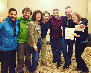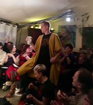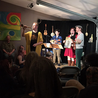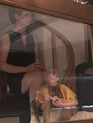 POST FACTUM 08FEB18 6:00PM An ice-breathing monkey-giraffe in a tropical cave in Mexico with a hot lava gummy bear. That was the improvised story points. They continue to get more elaborate and more imaginative. On another note, the theater we normally perform in is being torn down. We were in an old-fashioned lecture hall. Sort of unplugged. Good to know the show can handle all levels. Do miss the comfort of stage lights.