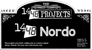 Food Theater Thunderdome III. 14/48: Nordo combines the pressure-cooker of The Worlds Quickest Theater Festival with the immersive experience and culinary excellence of Cafe Nordo. On Sunday night, four playwrights are paired with four chefs, given a random ingredient and a common theme, a randomly selected director and a randomly drawn cast. We will have four days to write, rehearse, prepare recipes for, and serve our audience the fruits of their labors on Thursday, Friday, and Saturday nights: four plays interwoven with a four-course meal. I'm directing Amy Escobar's play and Chef Aaron Willis' appetizer course, Nood What You Soba Nood, starring Andrew Shanks, Tricia Beigh, Kristina Sutherland Rowell, and Mike Gilson. There's a dark ceremony conjured by a crow and a raven, that is if they can get past the bubbly hosts, the Nordos.