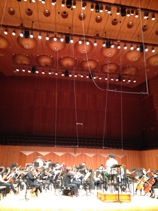 POST FACTUM 21MAY15 5PM To be honest, I was quite nervous going into performance week. The writing process for me was reverse of normal, chunking out transitions moment to moment instead of flowing out the whole show. (Lesson learned: write the big picture dream and then edit.) In the end, after all was said and done, we all seemed happy with the script. Not ecstatic, but happy. That's the state we rested in. It's not like a theater production where you have a reading or workshop to get feedback. The opening of this show would be a massive jump off a cliff. To make matters worse, the conductor rehearsal was cancelled last minute, so the timing and some of the physical bits would have to be thrown away. The next day the orchestra rehearsal had remarkably smooth moments but also moments that went horrifically awry. And then we opened. It happened all so fast, honestly, I can't even remember how that show went -- the public show, the show played to real, paid customers. I know my warm up was awesome. That seemed to be what folks talked about. I think they laughed at the instrument gags. That's the extent of what i recall. The school concerts were the real test. Day one, first show was clunky, didn't have its groove, but by the second show, we found our stride. It worked! Really really well, actually! Perhaps even better than last year. The professor was looser, poppier, goofier. Without the science exploration plot of the previous year, he could move more freely and wax back and forth with the conductor and audience. The schtick was less hysterically funny, but the show needed to crank, to run forward, which it did. And the complex participatory bits worked. Bam. Done. Whew. I feel like fifty percent of the show is "written" in those first shows on the fly. It's affirming, really. They really do have the right person doing this stuff -- in all modesty -- me! Highlights: the increasingly fun and complex interaction with the second violin chair. She was fun to push the guitar on. Oh, the moment when I made the entire string section laugh, mentioning their well developed neck muscles. Hearing how Mike, the stagehand, was a superstar with the kids. "I was out on the street and all these kids are yelling 'Hey, it's Mike!'" The fourth show, not knowing where we were at, what the heck was going on -- multiple shows back to back is a surreal experience. The top two memoris of them all: listening to two thousand students sing and play O Fortuna and In C, and being on stage right in the middle of the orchestra playing Holst's Mars! Bloody amazing.