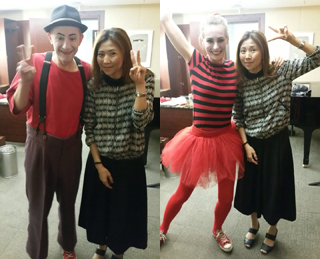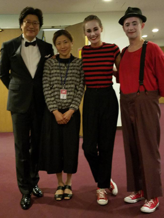 Sara Mountjoy-Pepka and I join forces to playfully wreak havoc on the symphony. Wonder what it'll be like interacting on stage in another language...